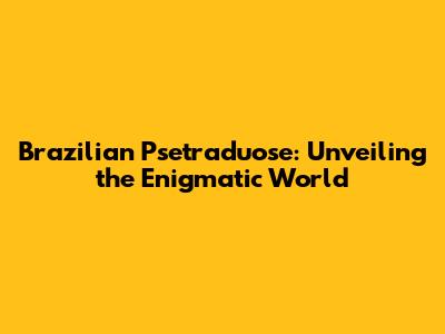 Brazilian Psetraduose: Unveiling The Enigmatic World
