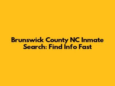 Brunswick County NC Inmate Search: Find Info Fast