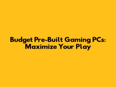 Budget Pre-Built Gaming PCs: Maximize Your Play