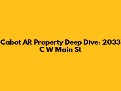 Hey there, real estate enthusiasts! Let's dive deep into the details of 2033 C W Main St in Cabot, AR 72023. This article is your go-to source for everything you need to know about this property, from its location and potential to the surrounding neighborhood vibes. We'll explore the real estate market, break down the property's features, and give you a comprehensive understanding of what makes this address tick. So, whether you're a prospective buyer, a curious investor, or just someone who loves a good property deep dive, you're in the right place. Let's get started, shall we?