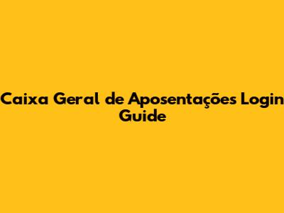 Caixa Geral De Aposentações Login Guide