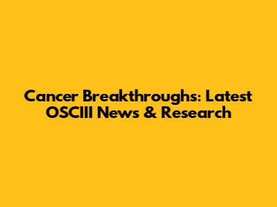 Cancer Breakthroughs: Latest OSCIII News & Research