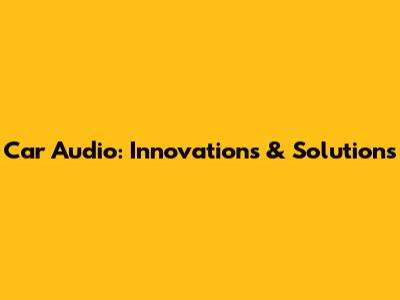 Car Audio: Innovations & Solutions