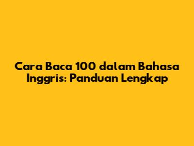 Cara Baca 100 Dalam Bahasa Inggris: Panduan Lengkap