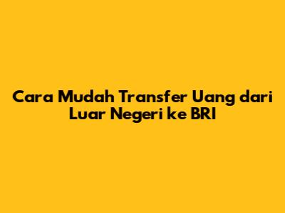 Cara Mudah Transfer Uang Dari Luar Negeri Ke BRI