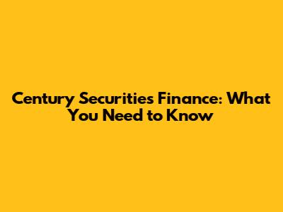 Century Securities Finance: What You Need To Know