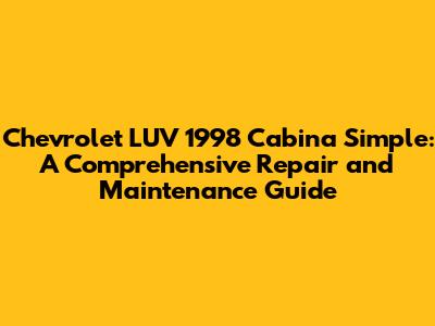 Chevrolet LUV 1998 Cabina Simple: Repair & Maintenance Guide