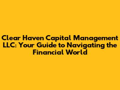 Hey there, financial enthusiasts! Ready to dive deep into the world of Clear Haven Capital Management LLC? We're talking about a firm that's been making waves in the investment landscape, and today, we're going to break down everything you need to know. From their core strategies to the kind of impact they're making, this article is your go-to resource. So, grab a coffee (or your favorite beverage), settle in, and let's explore what makes Clear Haven Capital tick!