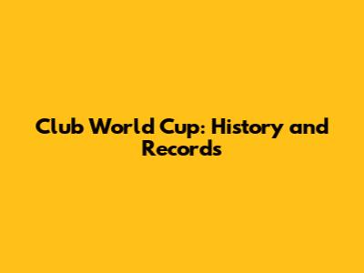 Club World Cup: History And Records