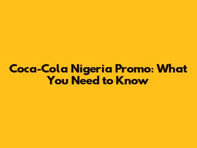 Coca-Cola Nigeria Promo: What You Need To Know