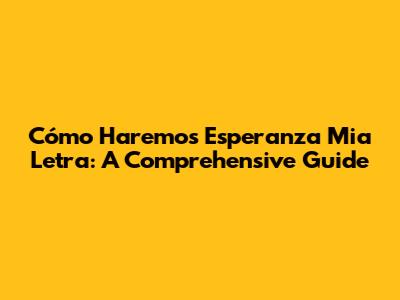 Cómo Haremos Esperanza Mia Letra: A Comprehensive Guide