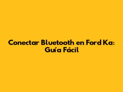 Conectar Bluetooth En Ford Ka: Guía Fácil