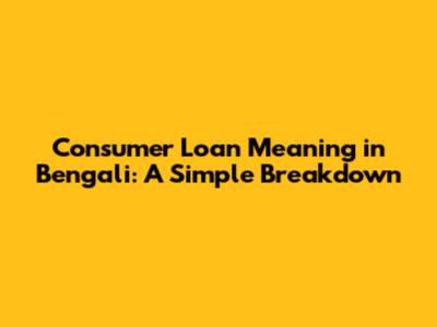 Consumer Loan Meaning in Bengali: A Simple Breakdown