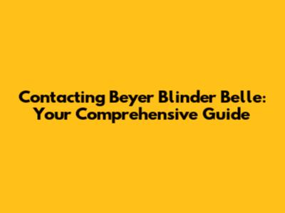Beyer Blinder Belle Phone Number and Contact Details: The Essentials