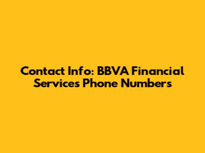 Contact Info: BBVA Financial Services Phone Numbers