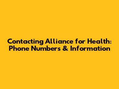 Contacting Alliance For Health: Phone Numbers & Information