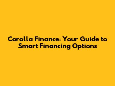 Corolla Finance: Your Guide To Smart Financing Options