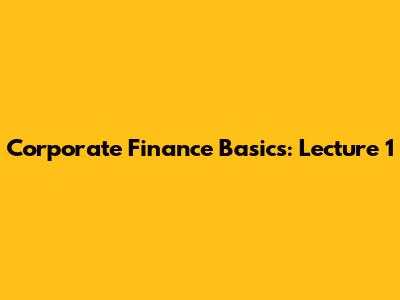 Corporate Finance Basics: Lecture 1