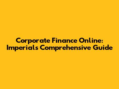 Corporate Finance Online: Imperial's Comprehensive Guide