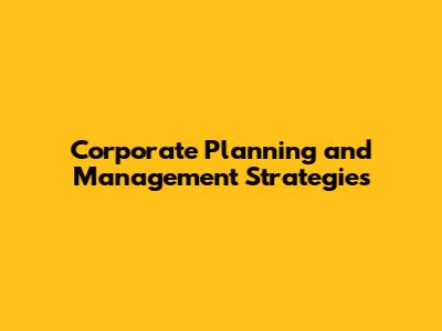 Corporate Planning And Management Strategies