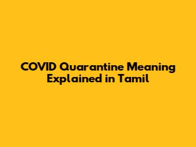 COVID Quarantine Meaning Explained In Tamil