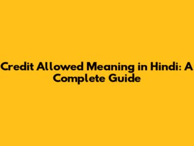 Credit Allowed Meaning In Hindi: A Complete Guide