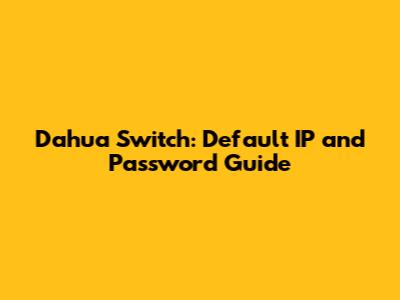 Dahua Switch: Default IP And Password Guide