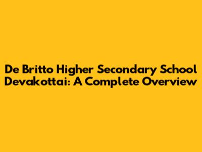 Welcome, guys! Let's dive deep into everything you need to know about De Britto Higher Secondary School in Devakottai. Whether you're a parent considering enrolling your child, an alumnus reminiscing about your school days, or just curious about this institution, this article has got you covered. We'll explore its history, academics, extracurricular activities, admission process, and what makes it a standout educational hub.
