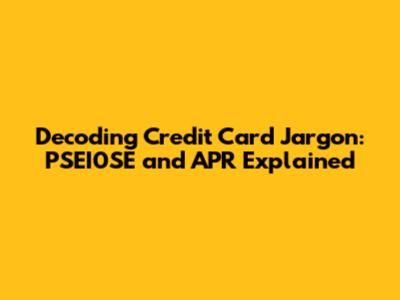 Decoding Credit Card Jargon: PSEI0SE And APR Explained