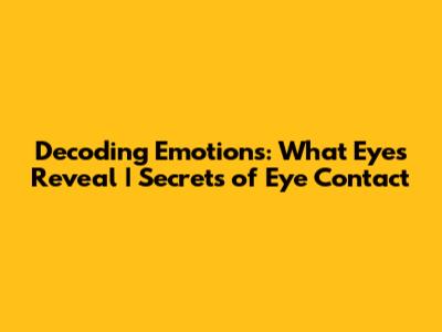 Decoding Emotions: What Eyes Reveal | Secrets Of Eye Contact