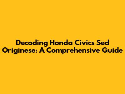 Decoding Honda Civic's Sed Originese: A Comprehensive Guide