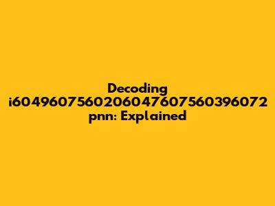 Unveiling the Mystery: What Exactly is i6049607560206047607560396072 pnn?