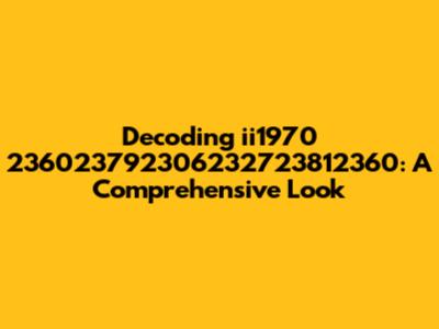 Decoding Ii1970 236023792306232723812360: A Comprehensive Look