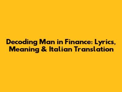 Decoding 'Man In Finance': Lyrics, Meaning & Italian Translation