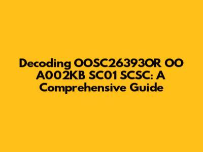 Decoding OOSC26393OR OO A002KB SC01 SCSC: A Comprehensive Guide