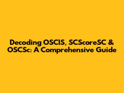 Decoding OSCIS, SCScoreSC & OSCSc: A Comprehensive Guide