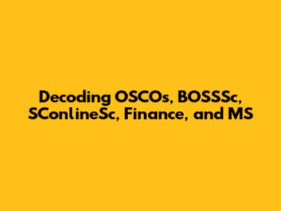 Decoding OSCOs, BOSSSc, SConlineSc, Finance, And MS