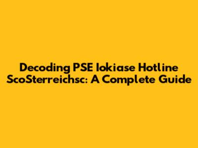 Decoding PSE Iokiase Hotline ScoSterreichsc: A Complete Guide