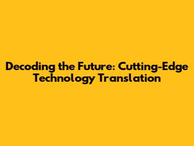 Decoding The Future: Cutting-Edge Technology Translation