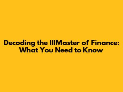 Decoding The IIIMaster Of Finance: What You Need To Know