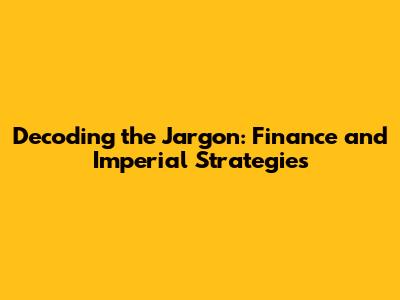 Decoding The Jargon: Finance And Imperial Strategies