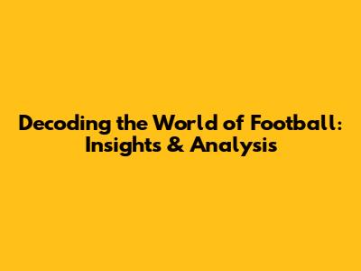 Decoding The World Of Football: Insights & Analysis