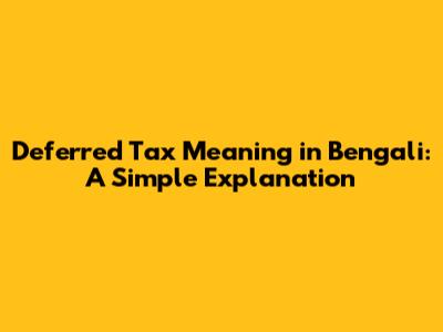Deferred Tax Meaning In Bengali: A Simple Explanation