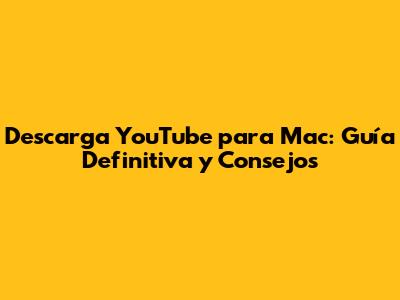 Descarga YouTube Para Mac: Guía Definitiva Y Consejos