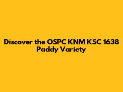 Discover The OSPC KNM KSC 1638 Paddy Variety