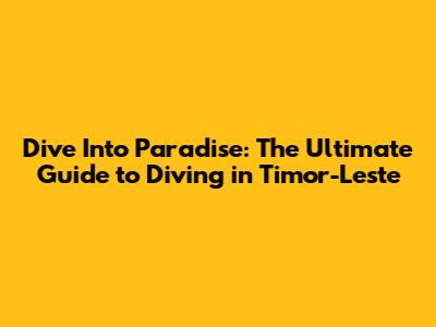 Dive Into Paradise: The Ultimate Guide To Diving In Timor-Leste