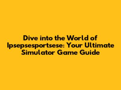 Dive Into The World Of Ipsepsesportsese: Your Ultimate Simulator Game Guide