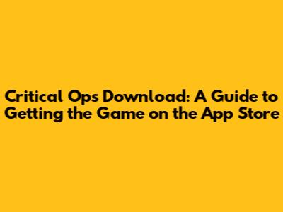 Download Critical Ops: App Store Guide