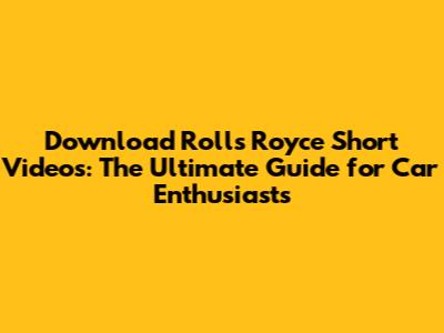 Download Rolls Royce Short Videos: The Ultimate Guide for Car Enthusiasts