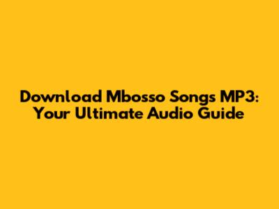 Download Mbosso Songs MP3: Audio Guide & Latest Hits